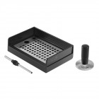 Tamper i rostfritt stål med logotyp och svart plasthandtag (avtagbart och utbytbart); 3 filter; 1 lägre droppbricka |