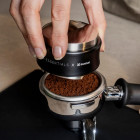 - Leveling tamper: Två verktyg i ett: en leveler för jämn fördelning och en tamper för exakt tampning. Båda sidor är djupjusterbara för att passa olika doser och recept.